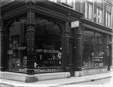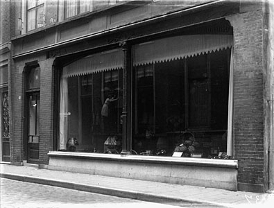 Pand van Tupker in de Voorstraat, een winkel in glas- en …