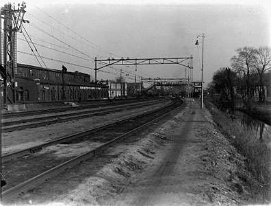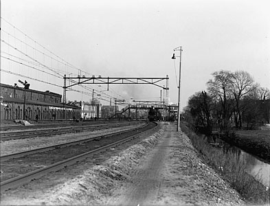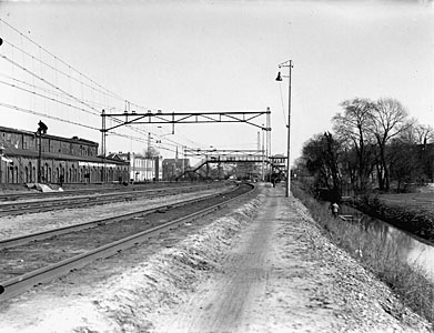 Spoorbaan naar het oosten vanaf de fabriek van Lips …