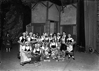 Een groep toneelspelers, waarschijnlijk op de bühne van …