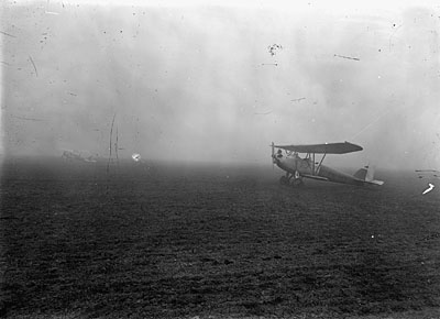 Vliegtuigen in een polder op het Eiland van Dordrecht.