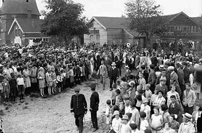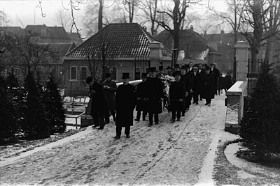 Een begrafenisstoet bij de ingang van de Algemene …