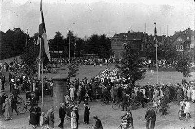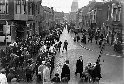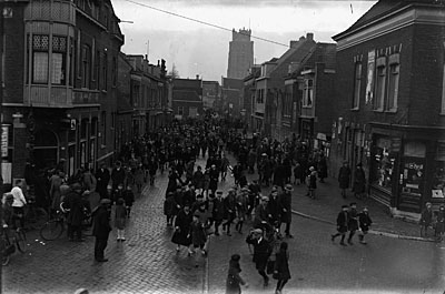 Een optocht gaat van de Vrieseweg richting Oranjelaan.