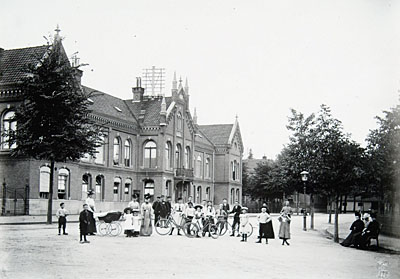 De familie Erdelmann fietsend op het Beverwijcksplein. …
