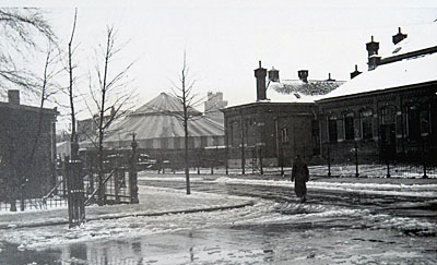 Gezicht op het circus Van Bever en links in de Raamstraat …