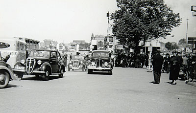 De hofauto met koningin Wilhelmina komt het …