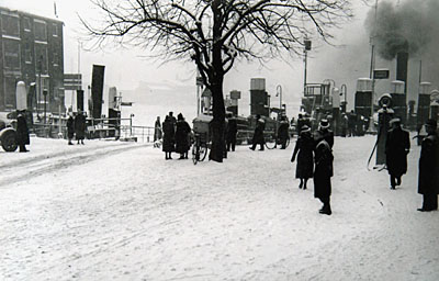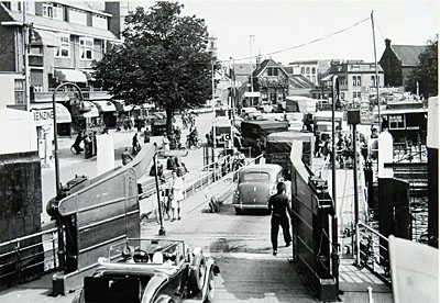 Aankomst van de pont aan het Blauwpoortsplein.