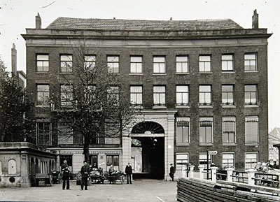 Gezicht op het Blauwpoortsplein, waar het veer uit …