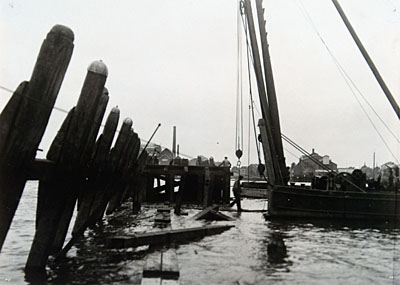 Het houten hoofd (pier) in de Bomhaven wordt afgebroken …