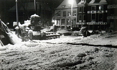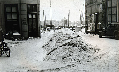 De Bomkade in de sneeuw gezien in de richting van de …