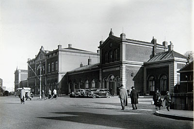 De Stationsweg met op de achtergrond de stationsgebouwen.