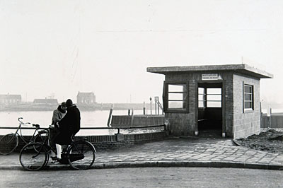 Wachthokje bij de nieuwe aanlegsteiger van het veer …