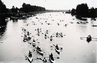 Kano's bij een vlot in het Wantij.