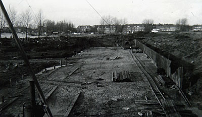 Afgraven van grond voor de aanleg van het Wantijbad …