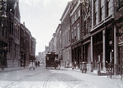 Paardentram op de Groenmarkt. Rechts van de paardentram …