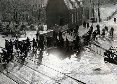 De spoorwegovergang van Krispijn naar de stad tussen …