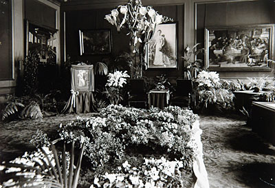 Met bloemen versierde raadzaal van het stadhuis.