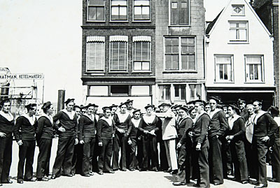Matrozen op de hoek Aardappelmarkt/Kuipershaven.