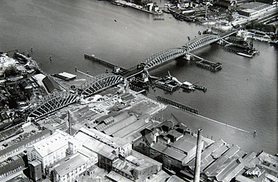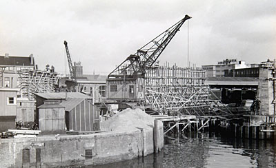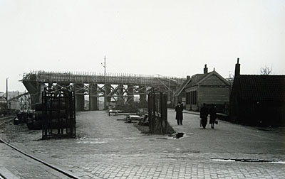 Bouw van het viaduct voor de verkeersbrug over de Oude …