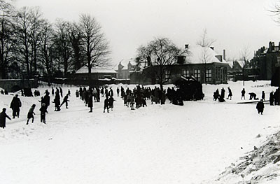 Besneeuwde Mazelaarsbrug en zakkendragershuis gezien …