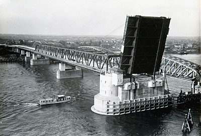 Verkeersbrug in aanbouw en spoorbrug over de Oude Maas, …