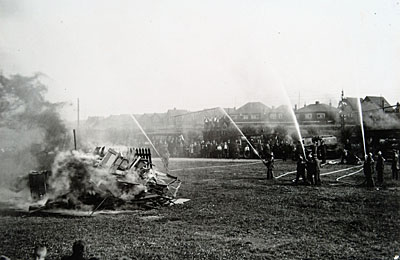 Brandweeroefeningen op het Sportpark aan de Reeweg.
