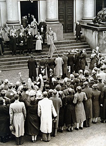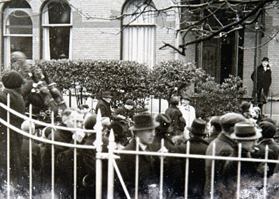 Publiek bij de ambtswoning van burgemeester Bleeker in de …