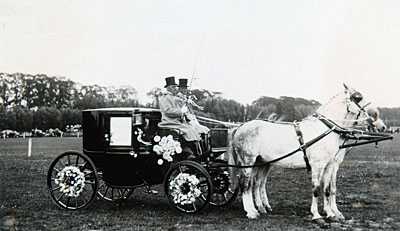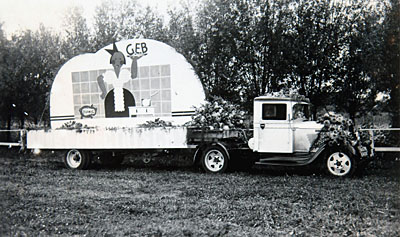 Praalwagen bij het bloemencorso op Oranjedag.