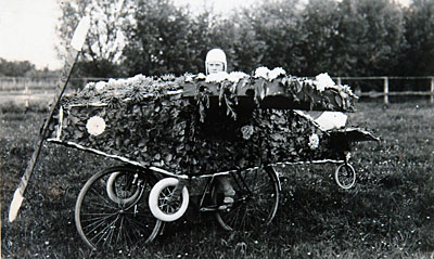 Deelnemer aan het bloemencorso op Oranjedag.