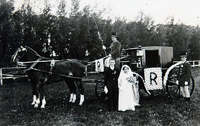 Deelnemers aan het bloemencorso op Oranjedag.