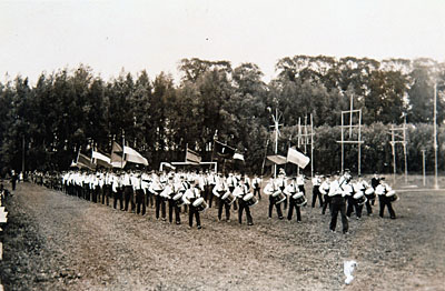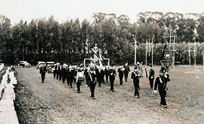 Muziekkorps in de optocht op Oranjedag.