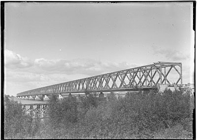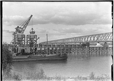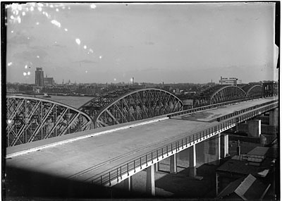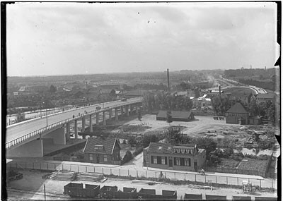 De verkeersbrug (links) en de spoorbrug over de Oude …