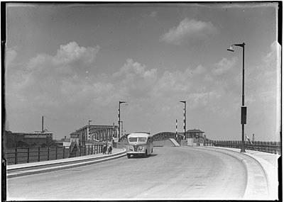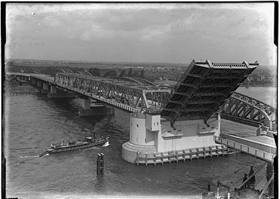 Geopende klep van de verkeersbrug over de Oude Maas, …