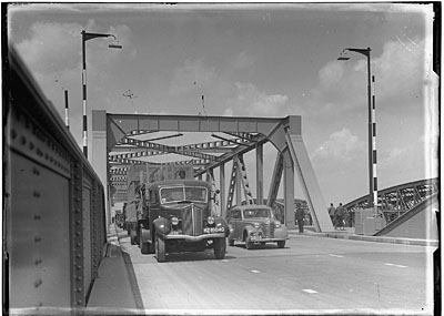 Verkeer op de Zwijndrechtse brug over de Oude Maas. …