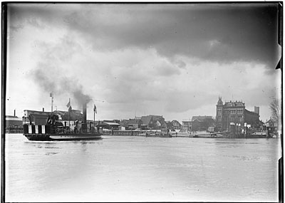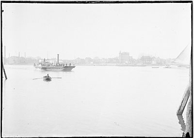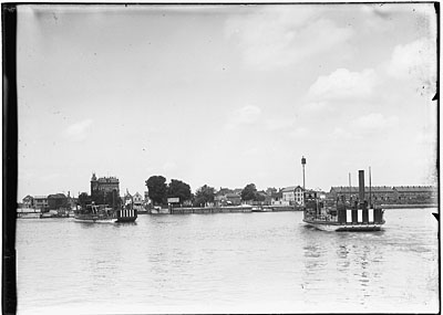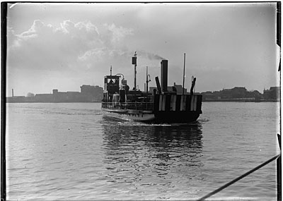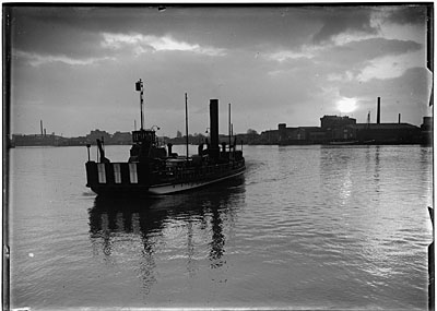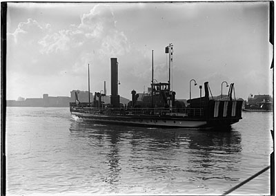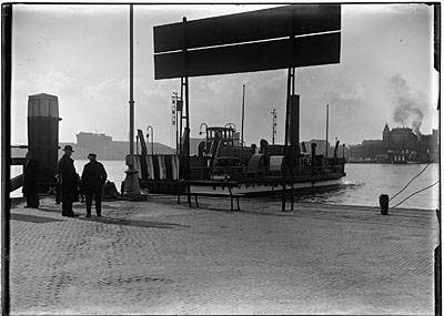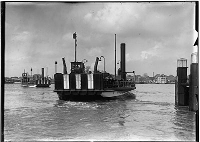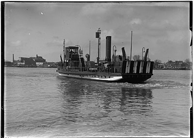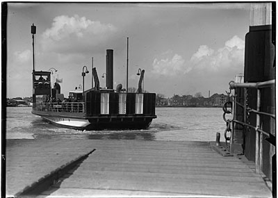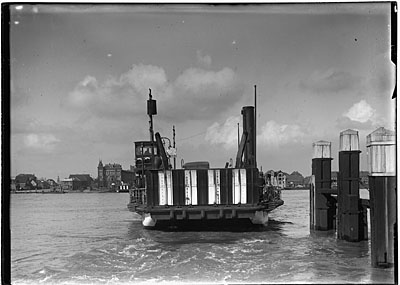 Een veerboot vertrekt voor de overtocht over de Oude Maas …