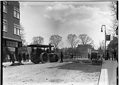 Stoomwals in actie op de Johan de Wittstraat nabij de …