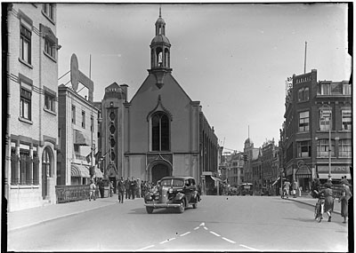 Scheffersplein richting Voorstraat. V.l.n.r.: grutterij …