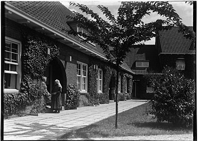 Bewoonsters van de Wilhelminastichting. De ingang tot het …