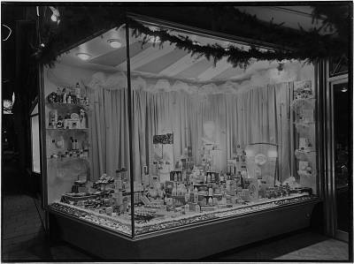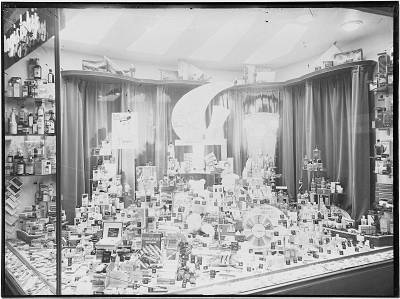 Etalage van parfumerie EMBA aan de Visstraat