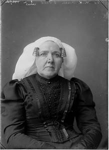 Weduwe H.A. Visser in klederdracht uit 's-Gravendeel