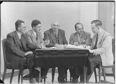 Medewerkers van de D.A.W.E.T. tijdens de tentoonstelling …