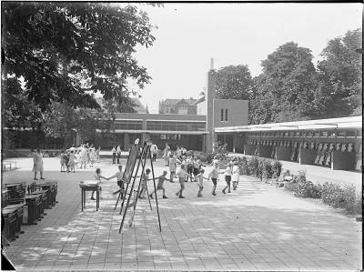 Schoolplein met leerlingen van de Buitenschool aan de …