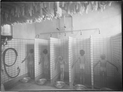 5 douchende leerlingen van de Buitenschool aan de Vrieseweg