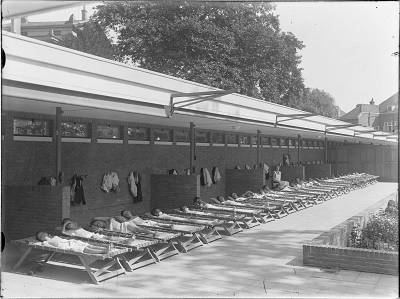 Rusten leerlingen op de binnenplaats van de Buitenschool …