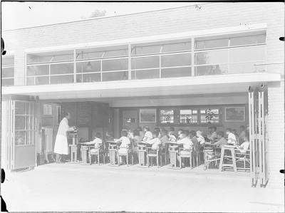 Onderwijs in lokaal met opengeslagen deuren in de …