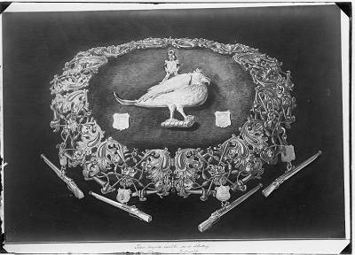 Reproductie van een tekening van een Zilververgulde …