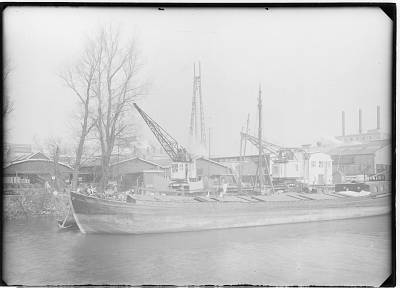 Vervoer over water van de Lips fabriek aan de Merwedestraat
