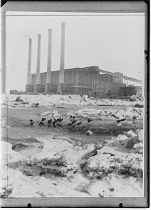 De centrale met de 4 schoorstenen aan de Kerkeplaat. Foto …