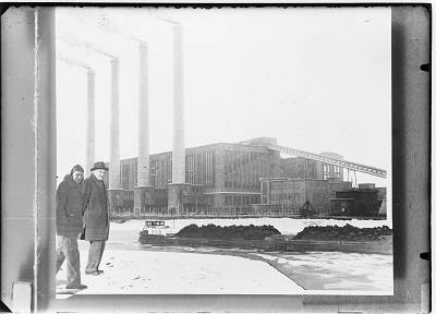 Kraaninstallatie bij de centrale met de 4 schoorstenen, …