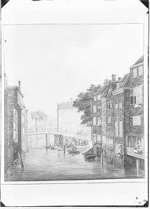 Tekening van de Voorstraatshaven met de Visbrug