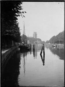 Nieuwe Haven gezien naar Grote Kerk; links Knolhaven